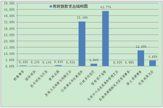 2011年財政撥款支出合計187,576.47萬元,其中基本支出114,435.51萬元、項目支出73,140.96萬元。按照財政部制定的《2011年政府收支分類科目》劃分,分別為: