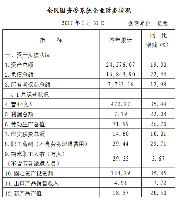 2017年(nian)1月份,廣西國資委系統(tong)企(qi)業(ye)經濟運行簡(jian)況如下: