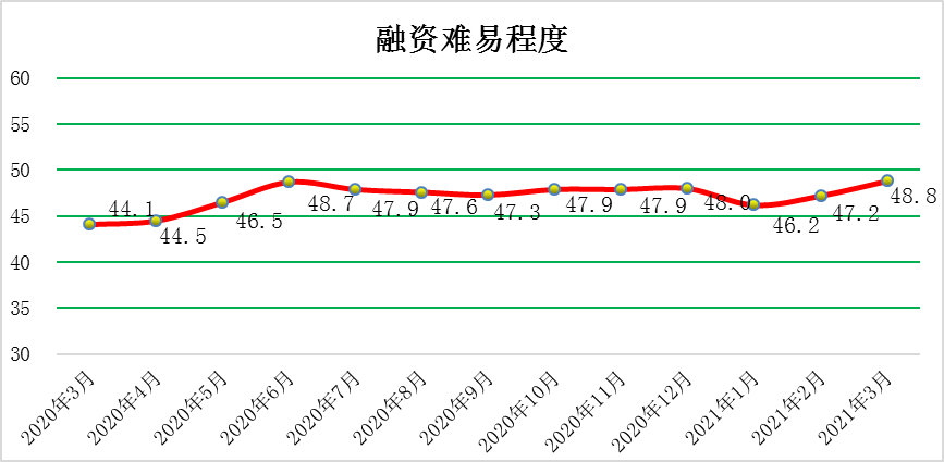 3月(yue)份(fen),經(jing)營環(huan)境(jing)指(zhi)數(shu)為(wei)53.9%,環(huan)比(bi)回(hui)落0.6個(ge)(ge)百分點,該指(zhi)數(shu)近一年浮動不大,市(shi)場(chang)經(jing)營環(huan)境(jing)情況持續向(xiang)好。具體來(lai)(lai)看,稅費負(fu)擔指(zhi)數(shu)為(wei)47.9%,環(huan)比(bi)下降4.4個(ge)(ge)百分點,有所回(hui)落,連續4個(ge)(ge)月(yue)回(hui)落,且跌落于榮枯線(xian)以下,稅費政策還需(xu)深(shen)化(hua),企(qi)業(ye)目前稅負(fu)情況并(bing)不樂觀;融(rong)資(zi)難易(yi)指(zhi)數(shu)為(wei)48.8%,環(huan)比(bi)上漲1.6個(ge)(ge)百分點,企(qi)業(ye)融(rong)資(zi)環(huan)境(jing)長期以來(lai)(lai)處(chu)于榮枯線(xian)下方,說明當(dang)前企(qi)業(ye)融(rong)資(zi)仍需(xu)政府出臺、調(diao)整相關政策以改善;市(shi)場(chang)秩(zhi)序指(zhi)數(shu)62.8%,環(huan)比(bi)上漲4.3個(ge)(ge)百分點,持續高于榮枯線(xian)且處(chu)高位,市(shi)場(chang)秩(zhi)序持續改善。