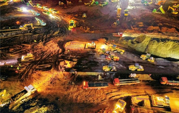 在抗擊新冠肺炎疫情過程中,國資國企聞令而動、勇挑重擔,主動服務國家防疫大局,在黨和人民最需要的時候挺身而出、不辱使命。圖為2020年1月26日,在武漢火神山醫院建設現場的中建三局施工人員挑燈夜戰,實行24小時不間斷作業。國務院國資委供圖 鄧紅武/攝