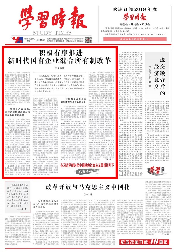 積極發展混合所有制經濟,是新形勢下堅持公有制主體地位,增強國有經濟活力、控制力、影響力的一個有效途徑和必然選擇。必須堅持以習近平新時代中國特色社會主義思想為指引,牢固樹立“四個意識”,深入貫徹落實新發展理念,更大力度、更深層次推進國有企業混合所有制改革。
