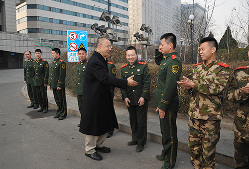 2月19日是農歷(li)大年初(chu)一。上午,受國資委(wei)主任、黨(dang)委(wei)書記張毅委(wei)托,委(wei)黨(dang)委(wei)委(wei)員(yuan)、秘書長閻曉峰代表委(wei)黨(dang)委(wei),先后(hou)到委(wei)西便門和(he)安定門辦公區機關值班室、中控室、武警(jing)(jing)駐地和(he)餐飲(yin)、物(wu)業等后(hou)勤服務部門,看(kan)望(wang)慰問堅守在工(gong)作(zuo)崗位(wei)的值班人員(yuan)、武警(jing)(jing)戰士和(he)后(hou)勤服務保障人員(yuan),向他(ta)們致以節日的問候(hou)和(he)良好的祝愿!