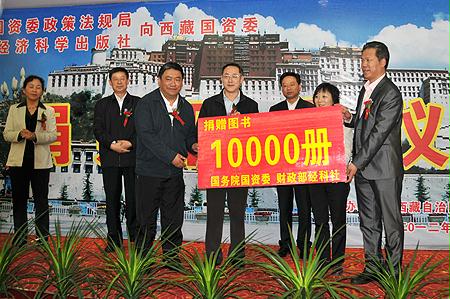 2012年(nian)7月23日,國務院國資委政策法(fa)規局(ju)、財政部經濟(ji)科學(xue)出版社(she)聯合向西(xi)(xi)藏(zang)自治(zhi)區國資委捐(juan)贈圖書儀(yi)式(shi)在拉薩舉行。西(xi)(xi)藏(zang)自治(zhi)區副(fu)主(zhu)席丁業(ye)現(xian)、國務院國資委政策法(fa)規局(ju)局(ju)長周渝(yu)波、財政部經濟(ji)科學(xue)出版社(she)總編呂萍(ping)、西(xi)(xi)藏(zang)國資委書記次成甲(jia)措、副(fu)主(zhu)任金思宇等出席了捐(juan)贈儀(yi)式(shi)。