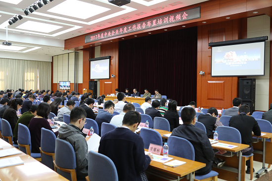 2017年(nian)(nian)(nian)11月2日,國(guo)(guo)資委組織召開2017年(nian)(nian)(nian)度(du)中(zhong)(zhong)央企(qi)業(ye)(ye)(ye)年(nian)(nian)(nian)度(du)工(gong)作(zuo)報(bao)告(gao)(gao)布置培訓視頻會議(yi)。監(jian)督一(yi)局局長禾(he)云同志作(zuo)會議(yi)講話,總(zong)結了(le)2016年(nian)(nian)(nian)度(du)報(bao)告(gao)(gao)工(gong)作(zuo)成績,部署了(le)2017年(nian)(nian)(nian)度(du)企(qi)業(ye)(ye)(ye)年(nian)(nian)(nian)度(du)工(gong)作(zuo)報(bao)告(gao)(gao)重點任務,對做好(hao)企(qi)業(ye)(ye)(ye)年(nian)(nian)(nian)度(du)工(gong)作(zuo)報(bao)告(gao)(gao)提出具體要(yao)求(qiu)。國(guo)(guo)家電(dian)網公(gong)(gong)司、中(zhong)(zhong)國(guo)(guo)寶武鋼(gang)鐵集(ji)團有限(xian)公(gong)(gong)司等2家企(qi)業(ye)(ye)(ye)作(zuo)了(le)交流發(fa)言(yan),中(zhong)(zhong)國(guo)(guo)中(zhong)(zhong)車集(ji)團公(gong)(gong)司、中(zhong)(zhong)國(guo)(guo)黃金集(ji)團公(gong)(gong)司等2家企(qi)業(ye)(ye)(ye)作(zuo)了(le)書面(mian)交流。監(jian)督一(yi)局有關(guan)同志講解了(le)年(nian)(nian)(nian)度(du)報(bao)告(gao)(gao)的(de)格式文本編報(bao)要(yao)求(qiu)和(he)試用軟件。
