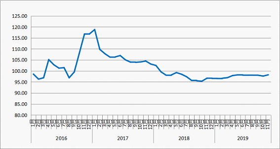 2019年11月份,由中國物流(liu)與采購(gou)聯(lian)合(he)會和(he)林(lin)安物流(liu)集團聯(lian)合(he)調(diao)查的(de)中國公(gong)路物流(liu)運價指數(shu)為98.2點(dian),比(bi)(bi)(bi)上月回升0.59%,比(bi)(bi)(bi)去年同期增長1.59%。月內各周指數(shu)震蕩波動,漲(zhang)跌(die)互(hu)現,其中第(di)一至(zhi)四周環比(bi)(bi)(bi)回落,第(di)五(wu)周環比(bi)(bi)(bi)回升。