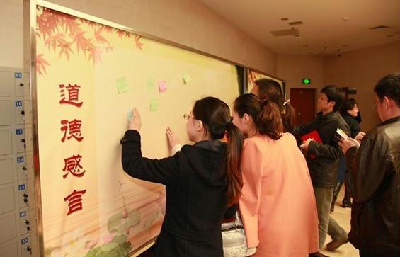 學(xue)(xue)習(xi)身邊的先進(jin)人(ren)(ren)物,他們的事跡就真(zhen)(zhen)真(zhen)(zhen)切切擺在那里(li),以身邊人(ren)(ren)講(jiang)(jiang)身邊事、身邊人(ren)(ren)講(jiang)(jiang)自己事、身邊人(ren)(ren)教身邊人(ren)(ren)為依托,弘揚(yang)真(zhen)(zhen)善美,更親近(jin)、也更容(rong)易(yi)讓(rang)人(ren)(ren)接(jie)受(shou)。活(huo)動的最后一(yi)(yi)(yi)個環節,留(liu)下了感(gan)人(ren)(ren)的一(yi)(yi)(yi)幕,與(yu)會人(ren)(ren)員紛(fen)紛(fen)寫下真(zhen)(zhen)摯的道(dao)德感(gan)言,“助(zhu)人(ren)(ren)為樂的快樂是真(zhen)(zhen)正意(yi)義上的快樂”,“傳承(cheng)愛(ai)心(xin),奉獻力量”,“走進(jin)道(dao)德講(jiang)(jiang)堂(tang),學(xue)(xue)習(xi)道(dao)德規范,弘揚(yang)道(dao)德精(jing)神,踐(jian)(jian)行道(dao)德實踐(jian)(jian)”。很(hen)多同志也第一(yi)(yi)(yi)時間與(yu)兩位老人(ren)(ren)和(he)所(suo)工會聯(lian)系,資助(zhu)學(xue)(xue)生(sheng)、為學(xue)(xue)校捐書,用(yong)實際行動踐(jian)(jian)行愛(ai)心(xin)感(gan)悟。研究所(suo)表示將把“道(dao)德講(jiang)(jiang)堂(tang)”作(zuo)為開展(zhan)(zhan)精(jing)神文(wen)明創建的重(zhong)要平(ping)臺,有(you)計劃地定(ding)期開展(zhan)(zhan)下去(qu)。
