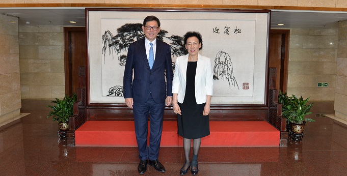 7月20日,國資委副主(zhu)任黃丹華在委內會見了香港金(jin)融管理局(ju)總(zong)裁陳德霖一行。