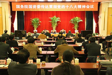 11月19日上午,管理局組織召開國資委學習貫徹黨的十八大精神會議,向管理局系統離退休老部長和21個單位黨政負責人傳達十八大精神。十八大代表、國資委副主任、黨委副書記邵寧同志傳達了十八大會議情況及十八大報告精神;十八大代表、國資委副主任、黨委委員金陽同志傳達了胡錦濤同志在十八大閉幕式的重要講話精神。委黨委委員、副秘書長、管理局黨委書記杜淵泉同志主持會議。