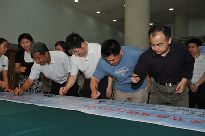 李(li)榮融主(zhu)任等國資委領導帶頭參加簽名活動