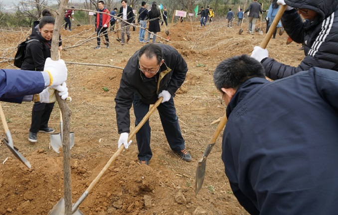 4月13日,國資委機關在南口綠化基地組織開展春季義務植樹。國資委副秘書長周渝波參加了植樹活動,與委機關各廳局及有關直屬單位共110余名同志共同種下了120株銀杏樹。