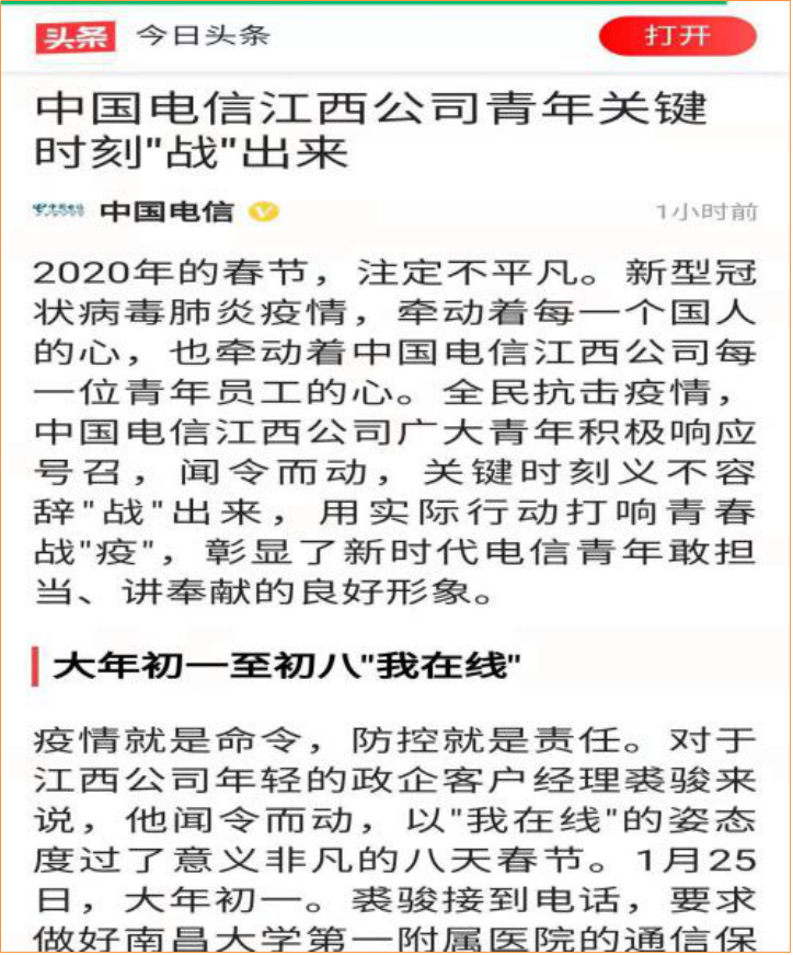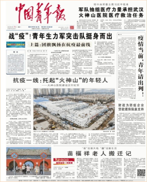 共青(qing)(qing)(qing)(qing)團中(zhong)央(yang)(yang)(yang)、中(zhong)國青(qing)(qing)(qing)(qing)年(nian)(nian)報(bao)、中(zhong)國青(qing)(qing)(qing)(qing)年(nian)(nian)雜志連續發布(bu)《倒計時(shi)!火神(shen)山夜戰(zhan)沖刺,青(qing)(qing)(qing)(qing)年(nian)(nian)突擊(ji)隊沖鋒》、《與時(shi)間賽跑、與疫(yi)情決戰(zhan)“戰(zhan)疫(yi)”一線:央(yang)(yang)(yang)企(qi)青(qing)(qing)(qing)(qing)年(nian)(nian)國家隊“逆(ni)行”而上》、《年(nian)(nian)輕的(de)逆(ni)行者(zhe):生(sheng)命(ming)大于(yu)一切,幸福不會推遲》等文章,對(dui)參與建設中(zhong)的(de)央(yang)(yang)(yang)企(qi)青(qing)(qing)(qing)(qing)年(nian)(nian)事(shi)跡進行特(te)別報(bao)道(dao),社會各界青(qing)(qing)(qing)(qing)年(nian)(nian)紛紛點(dian)贊。中(zhong)央(yang)(yang)(yang)企(qi)業(ye)青(qing)(qing)(qing)(qing)年(nian)(nian)在重(zhong)大任務面前從(cong)不缺席!各企(qi)業(ye)團委(wei)組(zu)建的(de)疫(yi)情防(fang)控(kong)青(qing)(qing)(qing)(qing)年(nian)(nian)突擊(ji)隊,做到(dao)了“黨旗所指就是團旗所向”,防(fang)控(kong)疫(yi)情舉措(cuo)部(bu)署到(dao)哪里,青(qing)(qing)(qing)(qing)年(nian)(nian)生(sheng)力軍的(de)作用就發揮到(dao)哪里!