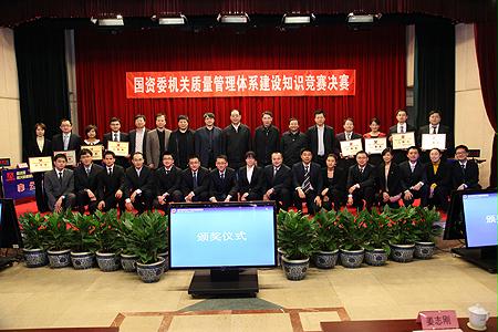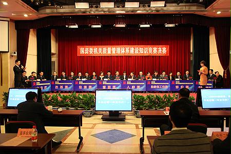 為營造“人人參與、人人有責(ze),管(guan)理(li)提升(sheng)、從我做起(qi)”的良好氛圍,根據國(guo)資(zi)委(wei)(wei)機(ji)關(guan)管(guan)理(li)提升(sheng)活(huo)動(dong)安(an)排,委(wei)(wei)機(ji)關(guan)管(guan)理(li)提升(sheng)活(huo)動(dong)領導小組(zu)辦公(gong)室和直屬機(ji)關(guan)黨委(wei)(wei)在(zai)委(wei)(wei)機(ji)關(guan)聯合開(kai)展了質量(liang)管(guan)理(li)體(ti)系(xi)建設知(zhi)識(shi)競(jing)賽(sai)活(huo)動(dong)。3月14日,質量(liang)管(guan)理(li)體(ti)系(xi)建設知(zhi)識(shi)競(jing)賽(sai)決賽(sai)在(zai)委(wei)(wei)機(ji)關(guan)舉行,國(guo)資(zi)委(wei)(wei)副(fu)主任、黨委(wei)(wei)委(wei)(wei)員姜志剛,國(guo)資(zi)委(wei)(wei)副(fu)秘書長郭建新出席(xi)活(huo)動(dong)。