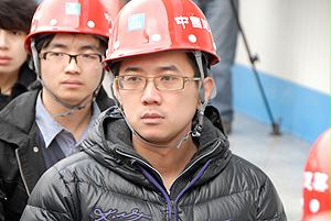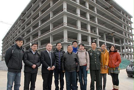 國資委機關青年(nian)志愿(yuan)者(zhe)與喬老在工地前(qian)合影