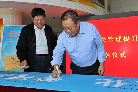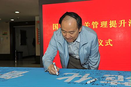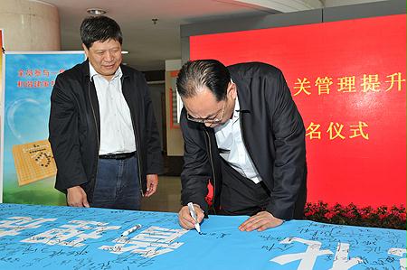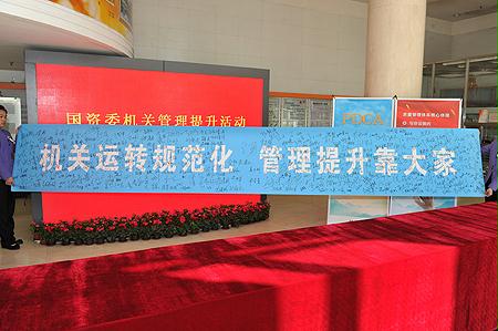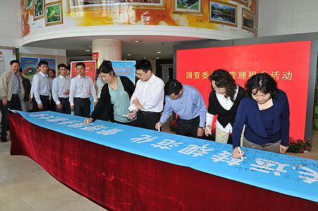 10月9日,國資委機關管理提升活動領導小組辦公室和直屬機關黨委共同組織了機關管理提升活動簽名儀式,國資委領導王勇、黃淑和、邵寧、黃丹華、金陽、孟建民、姜志剛,在家的監事會主席,副秘書長閻曉峰、郭建新和機關黨員干部分別在西便門和安定門辦公區參加了簽名活動。