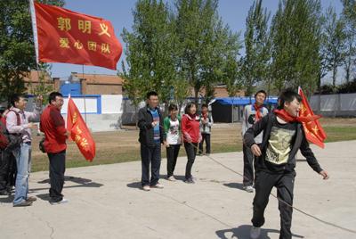 穿過(guo)重(zhong)重(zhong)煙霧,沿著唯(wei)一(yi)一(yi)條(tiao)通向學(xue)(xue)(xue)校的(de)(de)泥濘公路來到(dao)(dao)三河市(shi)段甲嶺鎮蔣福山(shan)小學(xue)(xue)(xue)。這(zhe)里交(jiao)通閉塞,環(huan)境污染嚴重(zhong),經濟落(luo)后,但是這(zhe)些都沒有(you)使這(zhe)里的(de)(de)孩子們(men)(men)(men)(men)(men)放棄求學(xue)(xue)(xue)的(de)(de)欲望,反而(er)激發起了(le)大(da)家更(geng)強烈的(de)(de)學(xue)(xue)(xue)習(xi)熱(re)情(qing)和改變家鄉的(de)(de)愿望。看到(dao)(dao)150多個(ge)孩子稚(zhi)嫩、純樸、可愛的(de)(de)笑臉(lian),志(zhi)愿者(zhe)們(men)(men)(men)(men)(men)心(xin)情(qing)非常激動,紛紛把(ba)帶來的(de)(de)學(xue)(xue)(xue)習(xi)用品(pin)和體育(yu)用品(pin)送到(dao)(dao)孩子們(men)(men)(men)(men)(men)手中。隨后,大(da)家來到(dao)(dao)課堂上,為(wei)孩子們(men)(men)(men)(men)(men)傳授(shou)科學(xue)(xue)(xue)文化知識(shi),回答孩子們(men)(men)(men)(men)(men)提出的(de)(de)問題,鼓勵他們(men)(men)(men)(men)(men)熱(re)愛學(xue)(xue)(xue)習(xi),要努力(li)學(xue)(xue)(xue)習(xi)科學(xue)(xue)(xue)文化知識(shi),做一(yi)個(ge)勇(yong)敢、堅(jian)強、有(you)益于社(she)(she)會(hui)的(de)(de)人(ren)。志(zhi)愿者(zhe)們(men)(men)(men)(men)(men)在表演(yan)了(le)自編的(de)(de)節目后,又來到(dao)(dao)操場上,和孩子們(men)(men)(men)(men)(men)共同做游戲,并植下(xia)了(le)愛心(xin)樹(shu),祝愿孩子們(men)(men)(men)(men)(men)能在社(she)(she)會(hui)各界愛心(xin)人(ren)士的(de)(de)幫助下(xia)和關心(xin)下(xia)茁壯成(cheng)長,將來成(cheng)為(wei)社(she)(she)會(hui)主義合格的(de)(de)建設者(zhe)和接班人(ren)。
