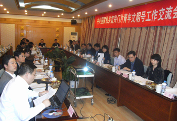 10月23日下午,中(zhong)央國(guo)(guo)(guo)(guo)(guo)(guo)家(jia)機(ji)關(guan)(guan)復興門片(pian)青年文明號(hao)工作交流會(hui)(hui)(hui)在(zai)北(bei)京和平(ping)里賓館召開。作為片(pian)區牽頭(tou)單位,國(guo)(guo)(guo)(guo)(guo)(guo)資(zi)委(wei)直屬(shu)機(ji)關(guan)(guan)團委(wei)牽頭(tou)組織了(le)這次會(hui)(hui)(hui)議(yi)(yi)。國(guo)(guo)(guo)(guo)(guo)(guo)資(zi)委(wei)直屬(shu)機(ji)關(guan)(guan)黨(dang)委(wei)副書記楊建一(yi)同(tong)志(zhi)、國(guo)(guo)(guo)(guo)(guo)(guo)資(zi)委(wei)石化機(ji)關(guan)(guan)服務中(zhong)心黨(dang)委(wei)書記李彪同(tong)志(zhi)、國(guo)(guo)(guo)(guo)(guo)(guo)資(zi)委(wei)石化機(ji)關(guan)(guan)服務中(zhong)心副主任歐陽涵同(tong)志(zhi)、中(zhong)央國(guo)(guo)(guo)(guo)(guo)(guo)家(jia)機(ji)關(guan)(guan)團工委(wei)辦公室主任張利(li)霞同(tong)志(zhi)出席會(hui)(hui)(hui)議(yi)(yi)。10家(jia)2006年度中(zhong)央國(guo)(guo)(guo)(guo)(guo)(guo)家(jia)機(ji)關(guan)(guan)青年文明號(hao)(復興門片(pian))集體負(fu)責人(ren)(ren),教育(yu)部(bu)、水利(li)部(bu)、中(zhong)國(guo)(guo)(guo)(guo)(guo)(guo)人(ren)(ren)民銀行、國(guo)(guo)(guo)(guo)(guo)(guo)資(zi)委(wei)、銀監會(hui)(hui)(hui)、社(she)保基金會(hui)(hui)(hui)、南水北(bei)調辦、貿促會(hui)(hui)(hui)、工行等單位機(ji)關(guan)(guan)團委(wei)負(fu)責人(ren)(ren)共(gong)30余人(ren)(ren)參加了(le)會(hui)(hui)(hui)議(yi)(yi)。