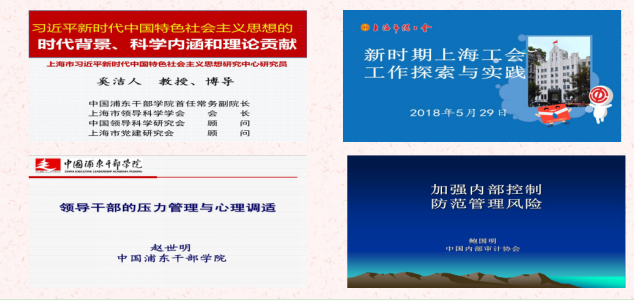培訓班采取專題講座、實地教學(xue)、研討(tao)交(jiao)流等多種形式(shi),內(nei)容全面豐(feng)富(fu),具有很強的針(zhen)對性、指導性和實用性。培訓班邀請中(zhong)國(guo)浦(pu)東干部學(xue)院(yuan)首任常務(wu)副院(yuan)長奚潔人作《認(ren)真學(xue)習貫徹習近平新時代中(zhong)國(guo)特色(se)社會(hui)(hui)主(zhu)(zhu)義思想(xiang)》專題輔導報告,上海市總工(gong)會(hui)(hui)副主(zhu)(zhu)席、經審會(hui)(hui)主(zhu)(zhu)任桂曉燕講授《新時期(qi)工(gong)會(hui)(hui)工(gong)作的探索和實踐(jian)》,中(zhong)國(guo)內(nei)部審計協會(hui)(hui)副會(hui)(hui)長兼秘書長鮑國(guo)明作《加強工(gong)會(hui)(hui)會(hui)(hui)費內(nei)部控制,防范管理風險》專題講座,中(zhong)國(guo)浦(pu)東干部學(xue)院(yuan)教研部主(zhu)(zhu)任趙(zhao)世明講授《領導干部的心(xin)理調適與緩解》。