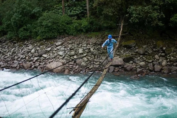電網工人與山猴子比攀巖,跟蜘蛛學溜索放線,被獨龍族人親切稱為“比山猴子還厲害”。
