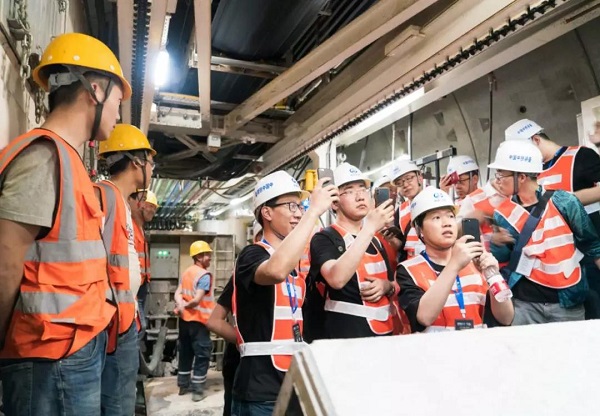 △小伙伴們走進中鐵裝備施工的隧道內,近距離觀看正在施工中的盾構機