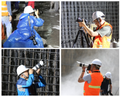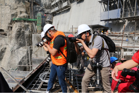 7圖說:攝影師們在烏東德水電站二道壩施工現場進行創作 攝影/趙彤
