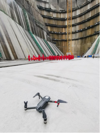 6圖說:在烏東德水電站大壩基坑內,等待起飛的無人機 攝影/劉海草