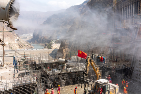 14攝影作品 工人在烏東德水電站的基坑內指揮施工 攝影/周佳偉