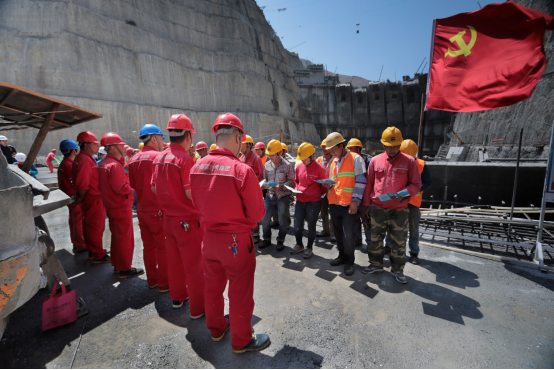 16攝影作品 在烏東德水電站二道壩施工現場,工人們正在開展班前安全質量教育會,強調“從頭開始、從零起步、從嚴要求、從實苦干” 攝影/李亞隆