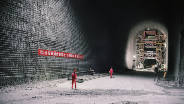 18攝影作品 在烏東德水電站泄洪洞中,工人正走向施工中的鋼模臺車 攝影/王懷樂