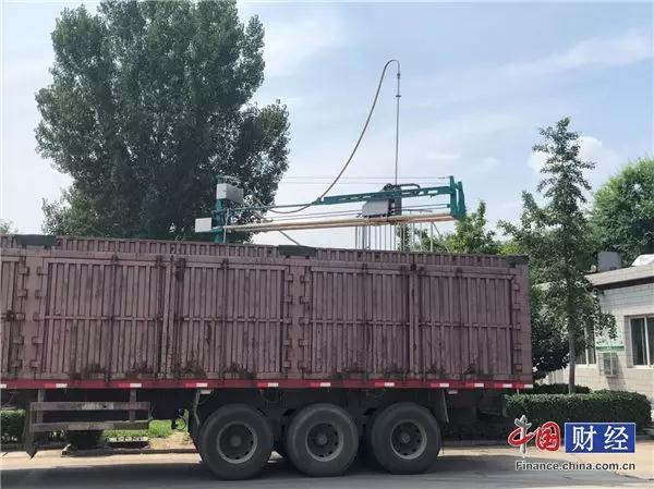 中儲糧涿州直屬庫,一輛大型運糧車正在卸糧入庫