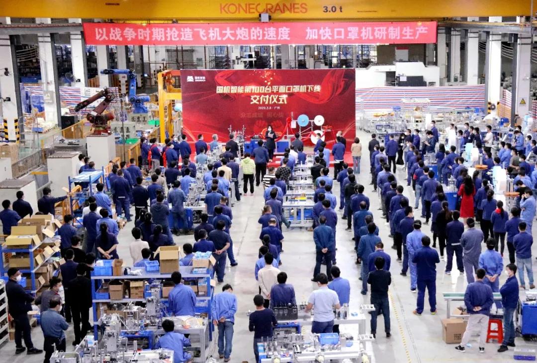 航空(kong)工(gong)業(ye)(ye)集團(tuan)16天即研(yan)制(zhi)(zhi)出首(shou)臺口(kou)(kou)(kou)罩(zhao)(zhao)(zhao)(zhao)機(ji)(ji)基本型樣(yang)機(ji)(ji),全(quan)(quan)自動口(kou)(kou)(kou)罩(zhao)(zhao)(zhao)(zhao)機(ji)(ji)達到100片/分鐘的設計指標(biao)。中(zhong)國(guo)船舶(bo)集團(tuan)僅用11天時(shi)(shi)間完(wan)(wan)(wan)成(cheng)(cheng)了(le)壓條(tiao)(tiao)機(ji)(ji)、N95口(kou)(kou)(kou)罩(zhao)(zhao)(zhao)(zhao)機(ji)(ji)、平面(mian)(mian)口(kou)(kou)(kou)罩(zhao)(zhao)(zhao)(zhao)機(ji)(ji)樣(yang)機(ji)(ji)研(yan)制(zhi)(zhi),從第15天就實現(xian)了(le)量產(chan)設備連續供貨。兵(bing)器工(gong)業(ye)(ye)集團(tuan)1500余名員工(gong)晝(zhou)夜奮戰(zhan),于2月27日完(wan)(wan)(wan)成(cheng)(cheng)首(shou)臺口(kou)(kou)(kou)罩(zhao)(zhao)(zhao)(zhao)機(ji)(ji)研(yan)制(zhi)(zhi),并(bing)已(yi)批(pi)量生(sheng)產(chan)交付。國(guo)機(ji)(ji)集團(tuan)用9天時(shi)(shi)間,完(wan)(wan)(wan)成(cheng)(cheng)首(shou)臺全(quan)(quan)自動平面(mian)(mian)口(kou)(kou)(kou)罩(zhao)(zhao)(zhao)(zhao)機(ji)(ji)樣(yang)機(ji)(ji)研(yan)制(zhi)(zhi),并(bing)迅速建立量產(chan)能(neng)力。此外,國(guo)機(ji)(ji)集團(tuan)還牽頭制(zhi)(zhi)定并(bing)發布《全(quan)(quan)自動口(kou)(kou)(kou)罩(zhao)(zhao)(zhao)(zhao)機(ji)(ji)》團(tuan)體標(biao)準(zhun),將(jiang)科研(yan)成(cheng)(cheng)果(guo)及技術(shu)經(jing)驗標(biao)準(zhun)化(hua),促進行(xing)業(ye)(ye)規范發展。通用技術(shu)集團(tuan)全(quan)(quan)自動平面(mian)(mian)口(kou)(kou)(kou)罩(zhao)(zhao)(zhao)(zhao)機(ji)(ji)完(wan)(wan)(wan)成(cheng)(cheng)樣(yang)機(ji)(ji)裝配,立體口(kou)(kou)(kou)罩(zhao)(zhao)(zhao)(zhao)機(ji)(ji)也(ye)即將(jiang)下線(xian)(xian)。中(zhong)國(guo)電子已(yi)向中(zhong)國(guo)石(shi)油和(he)中(zhong)國(guo)石(shi)化(hua)分別(bie)供應2條(tiao)(tiao)全(quan)(quan)自動口(kou)(kou)(kou)罩(zhao)(zhao)(zhao)(zhao)生(sheng)產(chan)線(xian)(xian),并(bing)搭建了(le)口(kou)(kou)(kou)罩(zhao)(zhao)(zhao)(zhao)產(chan)品標(biao)識(shi)解析平臺,可(ke)追(zhui)溯口(kou)(kou)(kou)罩(zhao)(zhao)(zhao)(zhao)產(chan)線(xian)(xian)、產(chan)品、生(sheng)產(chan)批(pi)次、質檢結果(guo)及生(sheng)產(chan)日期(qi)等全(quan)(quan)部生(sheng)產(chan)數據(ju)。