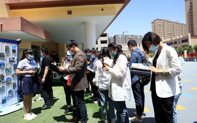 5月18日上午,記者采訪團一行前往中國華電投入900萬元援建的喀什市東城幼兒園,與幼兒園老師面對面交流,了解孩子的學習生活情況。墻上老師、孩子的手繪圖畫、不同特色的主題班吸引了記者們的眼球。該幼兒園2019年正式啟用,建設面積4000平方米,共有12個教學班、功能室,可供近400名兒童入園就讀。