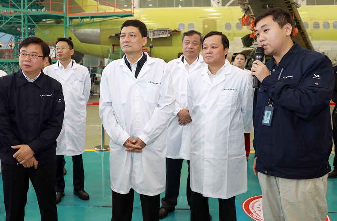 11月7日(ri),國(guo)(guo)務院(yuan)國(guo)(guo)資委主任肖亞慶到中(zhong)國(guo)(guo)商飛(fei)調(diao)研(yan)并召(zhao)開座談會,強(qiang)調(diao)要全面貫徹習近平新時代中(zhong)國(guo)(guo)特(te)色社會主義思想和黨的(de)十九大精神,牢記(ji)習近平總書(shu)記(ji)對中(zhong)國(guo)(guo)商飛(fei)的(de)囑(zhu)托,下決心、下恒(heng)心,自強(qiang)不息、苦練內功(gong)、埋(mai)頭實(shi)干,堅定不移把大飛(fei)機搞上去。