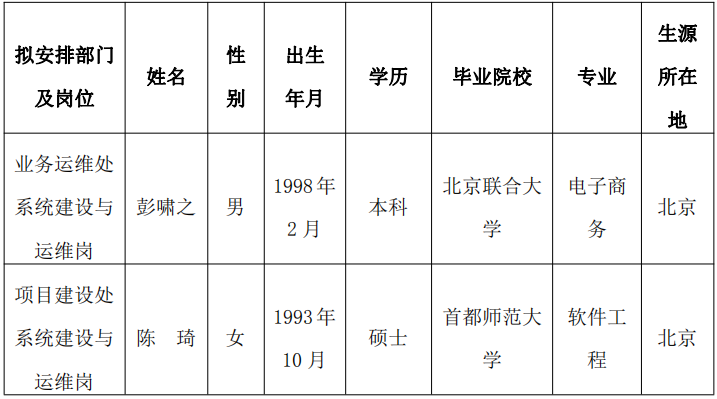 根(gen)據(ju)事(shi)業單位公開(kai)招(zhao)聘人(ren)(ren)員(yuan)有關(guan)規(gui)定,國資(zi)(zi)委(wei)信息中(zhong)心先后完成公開(kai)報名、資(zi)(zi)格審核、考試、體檢、考察等程(cheng)序(xu),經(jing)研究,擬聘用以下2020年應屆(jie)畢業生為我(wo)中(zhong)心工作人(ren)(ren)員(yuan),現予公示。