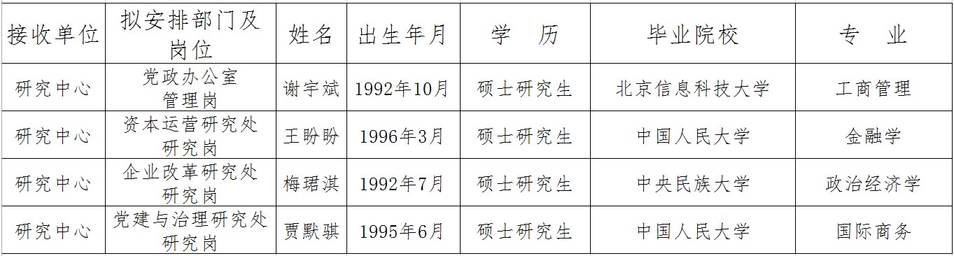 根據(ju)事業單位公(gong)開招(zhao)聘人(ren)員有關規定,先后(hou)完(wan)成資格審核、考試、體檢、考察(cha)等程序,經研究,擬聘用以下2020年應屆畢業生為我中心工作人(ren)員,現予公(gong)示(shi)。