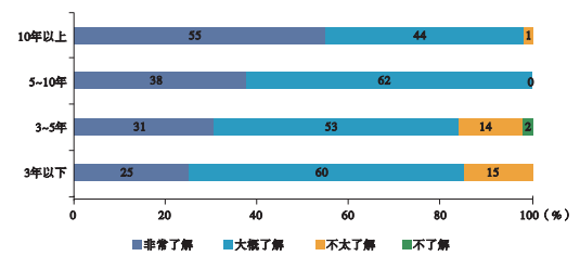 對(dui)東道國環境相關(guan)法律法規的了解(jie)程度(按海外業務年(nian)限劃分)