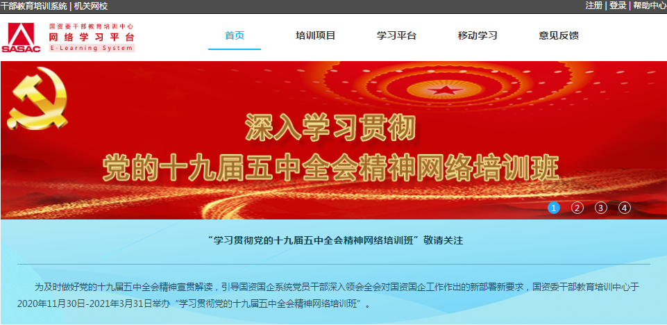 為及(ji)時廣(guang)泛做好黨(dang)的十九(jiu)屆五(wu)中全會精神宣貫解讀,進一步有效(xiao)引導國資國企系統各(ge)層級(ji)干(gan)部(bu)職工(gong)把思想和(he)行動統一到全會精神上來,國資委干(gan)部(bu)教(jiao)育(yu)培訓中心(xin)于(yu)2020年11月(yue)30日(ri)-2021年3月(yue)31日(ri)舉辦(ban)“學習貫徹黨(dang)的十九(jiu)屆五(wu)中全會精神網絡培訓班”。