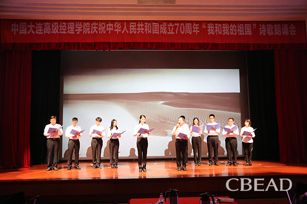 9月30日,中(zhong)國(guo)大連高(gao)級經理學(xue)院舉行“我和(he)我的祖國(guo)”詩歌朗誦會,熱烈慶祝中(zhong)華人(ren)民共和(he)國(guo)成立70周年。學(xue)院常務(wu)副(fu)院長(chang)、黨(dang)委(wei)副(fu)書記董大海,黨(dang)委(wei)副(fu)書記、紀(ji)委(wei)書記張之廣,以及全(quan)體教職工(gong)、后勤服務(wu)中(zhong)心管理團(tuan)隊(dui)參加詩歌朗誦會。