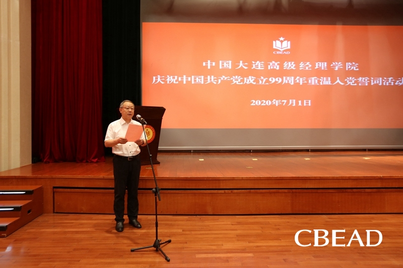 為(wei)慶(qing)祝(zhu)中國(guo)共產(chan)黨(dang)(dang)成(cheng)(cheng)立99周年,引導全院廣(guang)大(da)黨(dang)(dang)員銘記(ji)(ji)(ji)黨(dang)(dang)的(de)光(guang)輝(hui)歷程,發揚黨(dang)(dang)的(de)優良傳統和作風,不忘入黨(dang)(dang)初心,牢記(ji)(ji)(ji)職責使命,7月1日,中國(guo)大(da)連高級經(jing)理學(xue)院開展慶(qing)祝(zhu)中國(guo)共產(chan)黨(dang)(dang)成(cheng)(cheng)立99周年重溫入黨(dang)(dang)誓詞活(huo)動(dong)。學(xue)院黨(dang)(dang)委副(fu)書(shu)記(ji)(ji)(ji)、常務副(fu)院長董大(da)海,副(fu)院長談越(yue),黨(dang)(dang)委副(fu)書(shu)記(ji)(ji)(ji)、紀(ji)委書(shu)記(ji)(ji)(ji)張之廣(guang),全體黨(dang)(dang)員參加活(huo)動(dong),入黨(dang)(dang)積極分子列席,活(huo)動(dong)由董大(da)海主持。