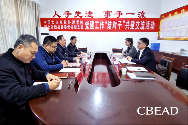 張之廣、楊文強分(fen)別介紹了學(xue)院與(yu)縣(xian)委黨(dang)(dang)(dang)校(xiao)基(ji)本(ben)情況(kuang)、主(zhu)要業務開展(zhan)情況(kuang),并(bing)著(zhu)重就雙(shuang)(shuang)方(fang)黨(dang)(dang)(dang)組(zu)織(zhi)(zhi)建(jian)(jian)設(she)及(ji)黨(dang)(dang)(dang)建(jian)(jian)活動開展(zhan)內容進行交流。雙(shuang)(shuang)方(fang)表示,本(ben)次黨(dang)(dang)(dang)組(zu)織(zhi)(zhi)結對共建(jian)(jian)起源國資(zi)委黨(dang)(dang)(dang)委對口(kou)幫扶(fu)工(gong)作,但同(tong)時也(ye)是雙(shuang)(shuang)方(fang)黨(dang)(dang)(dang)組(zu)織(zhi)(zhi)積極探索如(ru)何做(zuo)好黨(dang)(dang)(dang)建(jian)(jian)工(gong)作、業務工(gong)作的一次創(chuang)新(xin)嘗(chang)試。未(wei)來雙(shuang)(shuang)方(fang)將進一步(bu)加強交流,通過組(zu)織(zhi)(zhi)建(jian)(jian)設(she)互促、黨(dang)(dang)(dang)員干(gan)(gan)部(bu)互動、黨(dang)(dang)(dang)建(jian)(jian)載體互用、加強協(xie)同(tong)建(jian)(jian)設(she),學(xue)院將充分(fen)發揮干(gan)(gan)部(bu)培訓優勢,與(yu)魏(wei)縣(xian)黨(dang)(dang)(dang)校(xiao)共同(tong)努力提升魏(wei)縣(xian)黨(dang)(dang)(dang)員干(gan)(gan)部(bu)隊伍能力素質,增強黨(dang)(dang)(dang)員干(gan)(gan)部(bu)隊伍戰斗力、凝聚力,為(wei)魏(wei)縣(xian)鄉村振興新(xin)征程提供人才保障和有力支撐。