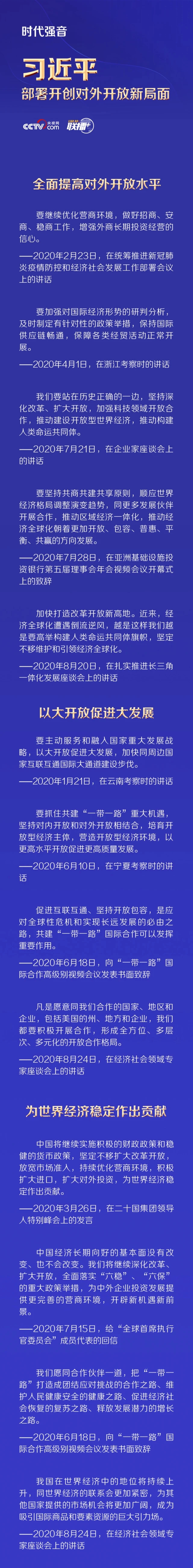無論考察調研,還是重要會議,在這個特殊之年,習近平始終主張保持擴大開放的政策節奏,秉持合作共贏的信念立場,以“將改革開放進行到底”的精神邁向“十四五”時期經濟社會發展新階段。