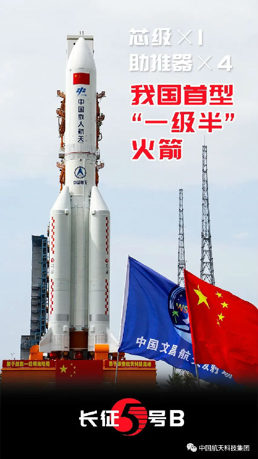 他來了,他來了,他帶著新飛船試驗船來了!他,就是大火(huo)箭長征(zheng)五(wu)號的(de)兄弟——長征(zheng)五(wu)號B。