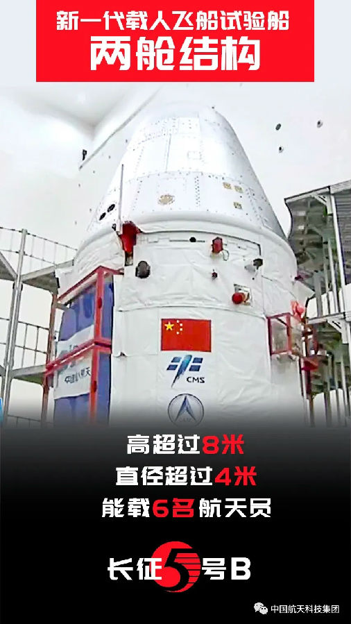 雖說主要任(ren)務(wu)是(shi)建設空間站(zhan),但(dan)長五B首次(ci)飛(fei)(fei)(fei)行(xing)的(de)乘客并不(bu)是(shi)空間站(zhan)艙段,而(er)是(shi)新一代載(zai)人飛(fei)(fei)(fei)船(chuan)(chuan)(chuan)(chuan)試驗(yan)船(chuan)(chuan)(chuan)(chuan)。我國“神(shen)舟”系列飛(fei)(fei)(fei)船(chuan)(chuan)(chuan)(chuan)已(yi)送(song)11名航天(tian)員(yuan)(14人次(ci))往返近地(di)軌(gui)道,但(dan)每(mei)次(ci)只(zhi)能載(zai)3名航天(tian)員(yuan), 而(er)新飛(fei)(fei)(fei)船(chuan)(chuan)(chuan)(chuan)最大(da)載(zai)客量將翻倍,這得益于新飛(fei)(fei)(fei)船(chuan)(chuan)(chuan)(chuan)在結構(gou)等方面的(de)優化。新飛(fei)(fei)(fei)船(chuan)(chuan)(chuan)(chuan)與“神(shen)舟”飛(fei)(fei)(fei)船(chuan)(chuan)(chuan)(chuan)同樣高8米多(duo),但(dan)腰圍(wei)比神(shen)舟“胖了(le)(le)”一圈,直徑從不(bu)到(dao)3米漲到(dao)了(le)(le)4米多(duo),神(shen)舟飛(fei)(fei)(fei)船(chuan)(chuan)(chuan)(chuan)的(de)軌(gui)道、返回、服務(wu)三艙也被優化整合為(wei)返回、服務(wu)兩艙,航天(tian)員(yuan)工作、生活的(de)條件也更舒(shu)適。