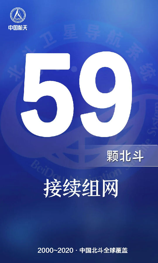 2020年6月23日,中國(guo)(guo)北(bei)(bei)斗衛(wei)(wei)(wei)星(xing)導(dao)(dao)(dao)航系統(tong)全(quan)球組網(wang)階段收官星(xing)發射圓滿(man)成(cheng)功。20年來,中國(guo)(guo)航天科技(ji)集團有限(xian)公司成(cheng)功發射了59顆(ke)北(bei)(bei)斗衛(wei)(wei)(wei)星(xing)(4顆(ke)北(bei)(bei)斗試(shi)驗導(dao)(dao)(dao)航衛(wei)(wei)(wei)星(xing)、55顆(ke)北(bei)(bei)斗導(dao)(dao)(dao)航衛(wei)(wei)(wei)星(xing)),在太空(kong)布局中國(guo)(guo)導(dao)(dao)(dao)航星(xing)座。