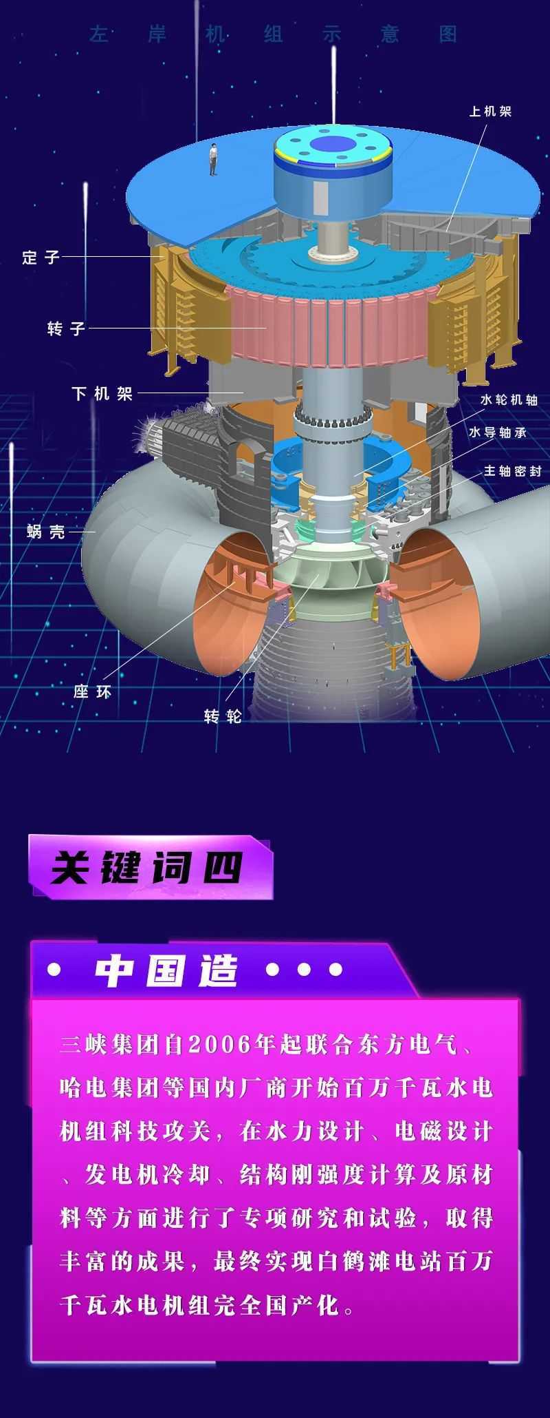 轉(zhuan)子(zi)(zi)是(shi)(shi)水輪發電機組的(de)重(zhong)要轉(zhuan)動部件(jian)。機組運行時(shi),轉(zhuan)子(zi)(zi)轉(zhuan)動產(chan)生旋轉(zhuan)磁(ci)場(chang),切割定子(zi)(zi)繞組,從而產(chan)生感(gan)應(ying)電勢、輸出電能。白鶴(he)灘水電站左岸機組轉(zhuan)子(zi)(zi)外(wai)圓(yuan)直徑(jing)約16.2米,最(zui)大高度約4.1米,起(qi)吊重(zhong)量達2100噸,是(shi)(shi)機組安(an)裝過(guo)程(cheng)中(zhong)重(zhong)量最(zui)大的(de)核心部件(jian)。