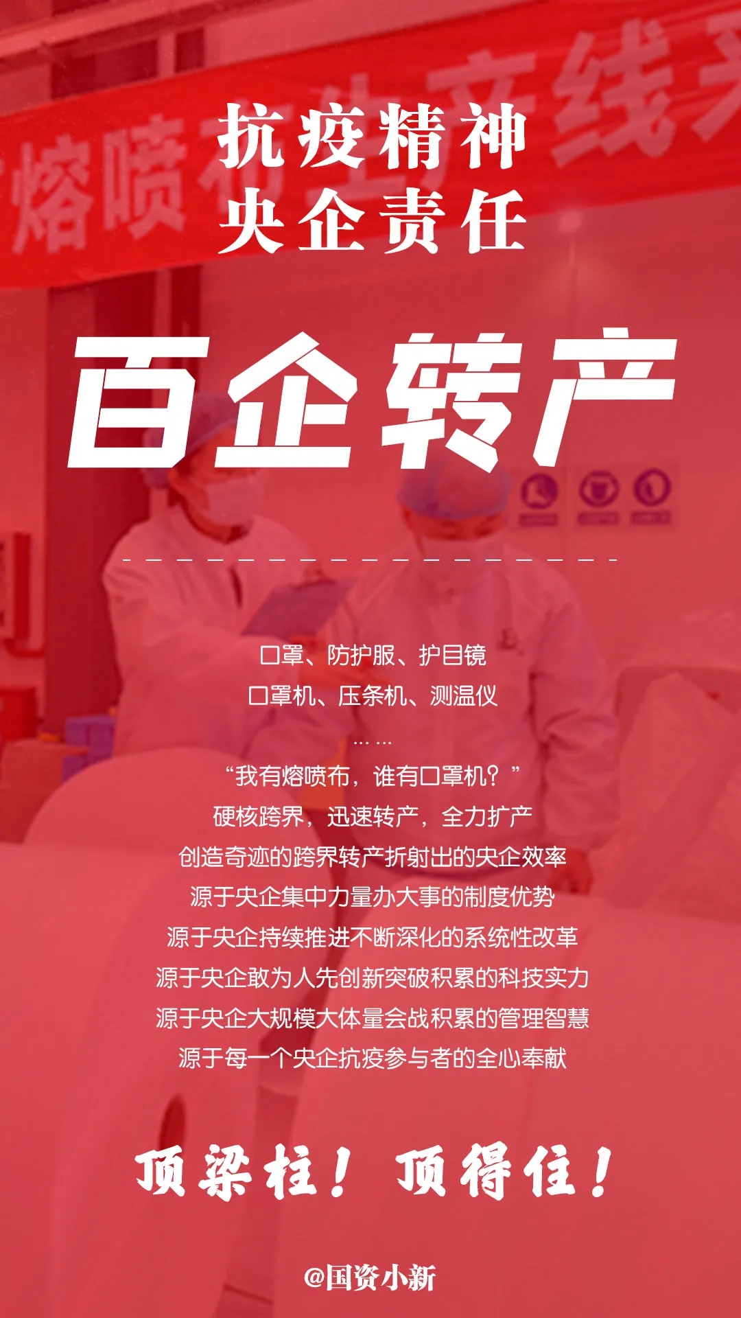 一(yi)苗當先,領先世(shi)界;兩(liang)山速度(du),創造奇跡;三不承諾,保供穩(wen)價;五(wu)降擔當,全力(li)保障;百企轉產,硬核(he)跨界;雙(shuang)鏈(lian)同(tong)穩(wen),協(xie)同(tong)發(fa)展。數(shu)說央企抗疫精神,共同(tong)見證央企責任(ren)。