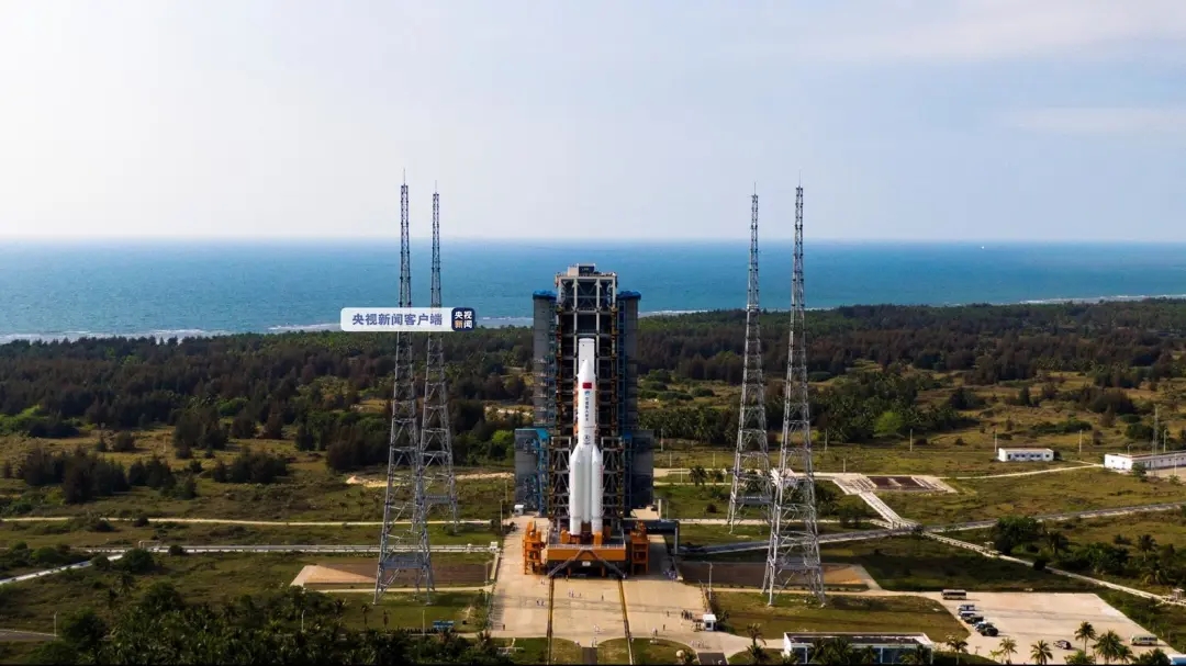 長征五號B火箭矗立在發射平臺上