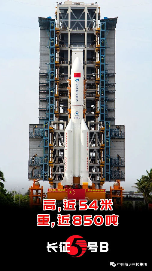 長五B“身(shen)高(gao)”近54米(mi),相當于18層樓(lou)高(gao),與長五比,矮(ai)了約3米(mi),“體重(zhong)”輕了約20噸。