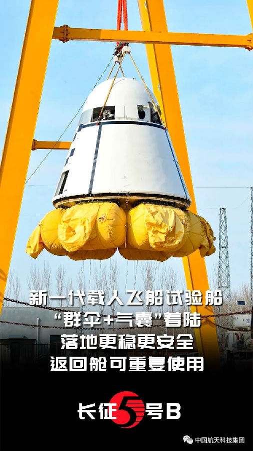 飛船返回艙穿著(zhu)新(xin)研制的“防熱衣”返回,頭頂群傘腳踩(cai)“氣球”著(zhu)陸,航天員落(luo)地(di)更穩(wen)、更安全,返回艙還能重復使用(yong)。