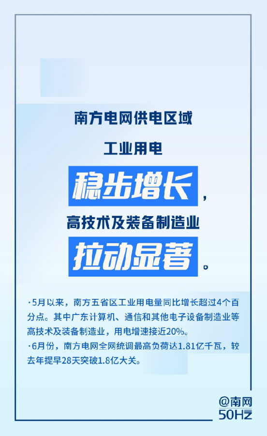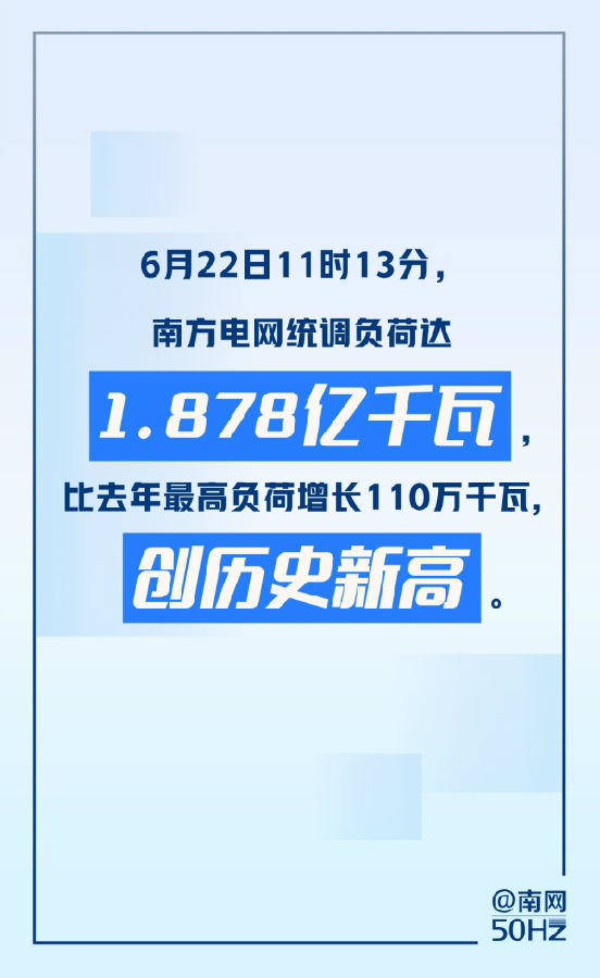 6月22日11時13分(fen),南方電網統調負荷(he)達1.878億千瓦,比(bi)去年最高(gao)負荷(he)增長110萬千瓦,創下歷史新高(gao)。