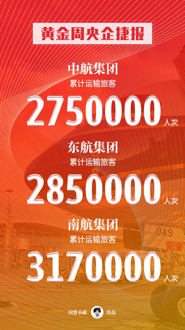 8天長(chang)假(jia)期間(jian)全(quan)國共接待國內(nei)游(you)客6.37億人(ren)次,按(an)可(ke)比口(kou)徑(jing)同比恢復79.0%,實現(xian)國內(nei)旅游(you)收入4665.6億元(yuan),按(an)可(ke)比口(kou)徑(jing)同比恢復69.9%。作為國民經(jing)濟重要支柱的中央(yang)企業,是假(jia)期消費旺(wang)、經(jing)濟暖的注腳,是假(jia)日經(jing)濟的服務(wu)保(bao)障。一起來看黃金周(zhou)央(yang)企捷報(bao)——